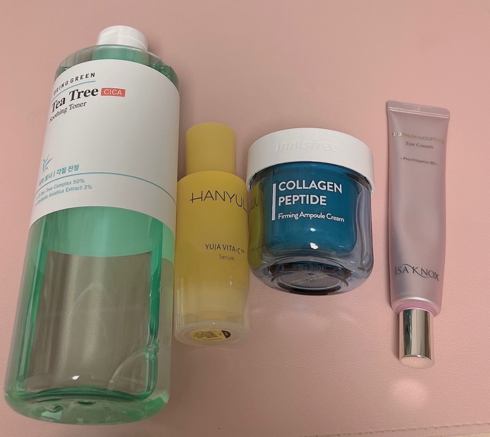 20대도 탄력과 주름 신경써야하는 거 아시죠? 오늘은 탄력 챙기는 루틴이에요! 브링그린 티트리 시카 수딩 토너로 피부결 정돈 후 한율 유자 세럼으로 수분 충전! 유자 세럼 냄새가 너무 좋아서 완전 힐링돼요... 이니스프리 콜라겐 펩타이드 크림으로 수분 충전도 하고 탄력관리도 해줬습니다 앰플 크림이라 가을, 겨울에 잘 어울려요 완전 촉촉쓰 마지막으로 이자녹스 아이크림으로 목, 눈, 팔자주름 등 특히 신경쓰이는 부분에 부분적으로 케어해줄게요