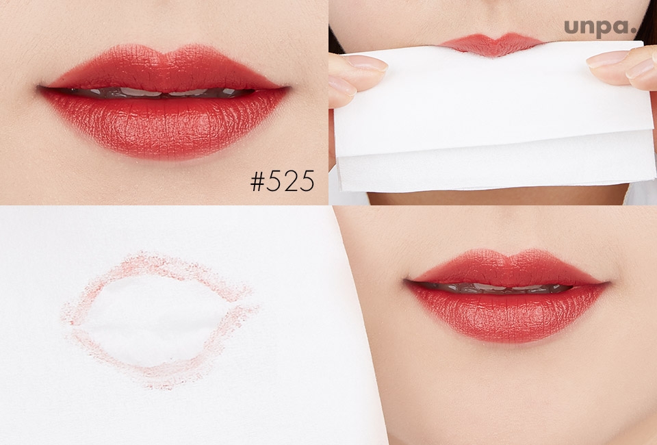 마음껏 풀발색하고 휴지로 살짝 물어봐도 잘 묻어나지 않아요!