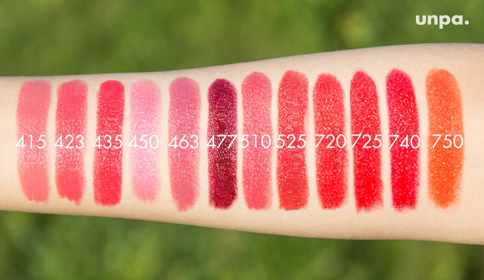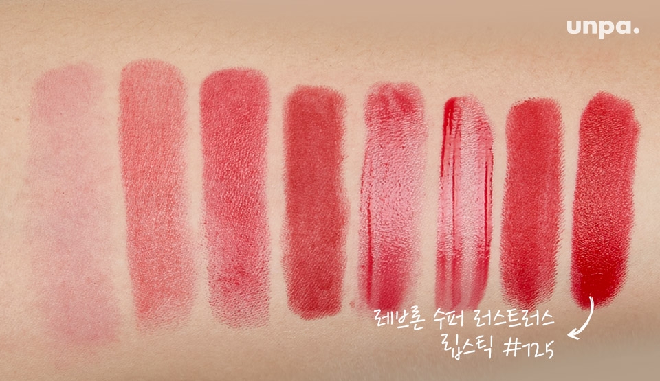 레브론 수퍼 러스트러스 립스틱 725호와 다른 쿨톤레드 립제품을 다 발라 비교해봤을때 발색력과 밀착력이 월등히 우수했어요! 발색깡패라는 별명이 괜히 붙은 게 아닌…!