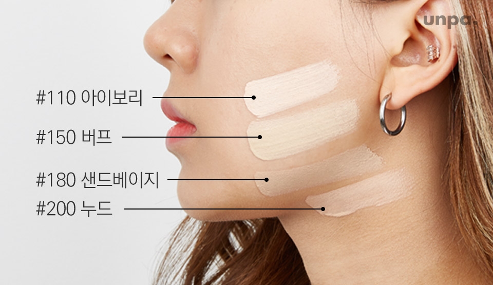 4가지 컬러가 톤이 모두 달라서 제 피부에 꼭 맞는 컬러를 찾을 수 있었어요! 평소 23호를 사용하는 웜톤인 저는 180 샌드베이지 컬러를 사용했습니다.