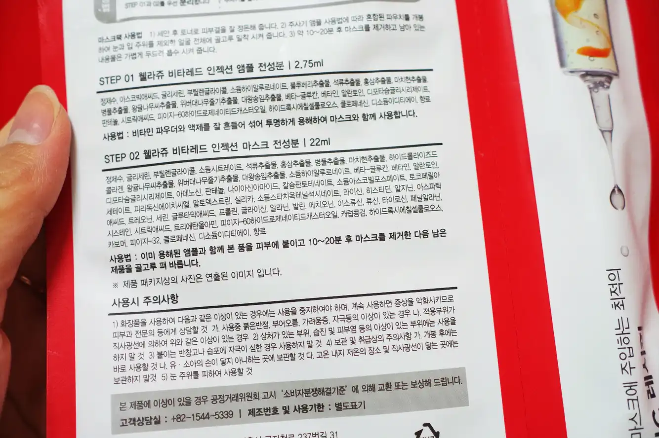 웰라쥬 - 비타레드 인젝션 마스크 에요. 5개에 22500원 입니다.