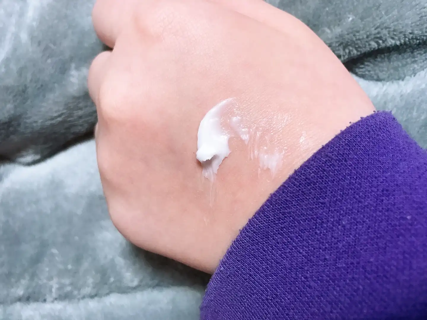 손에 크림을 바로 떠서 발랐을때 모습이에요❗️