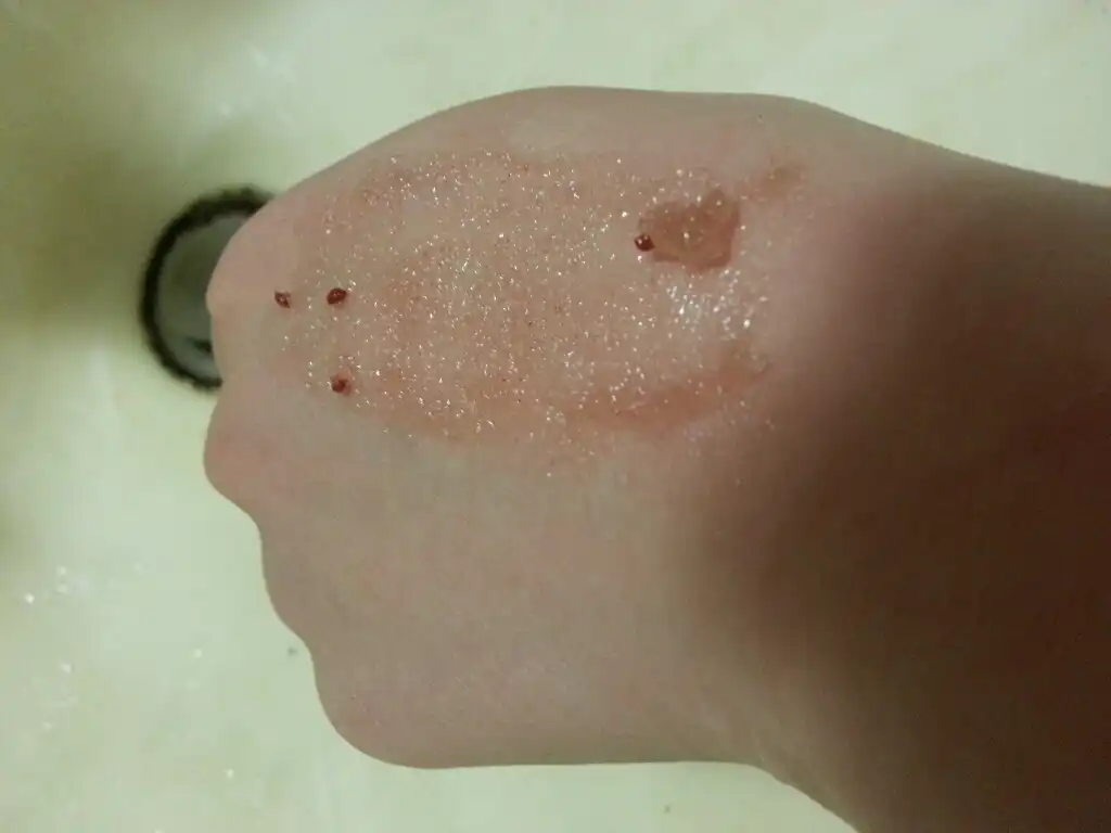 스크럽을 문질러도 크렌베리알갱이같은 것은 사라지지않고 설탕알갱이들은 사라지네요