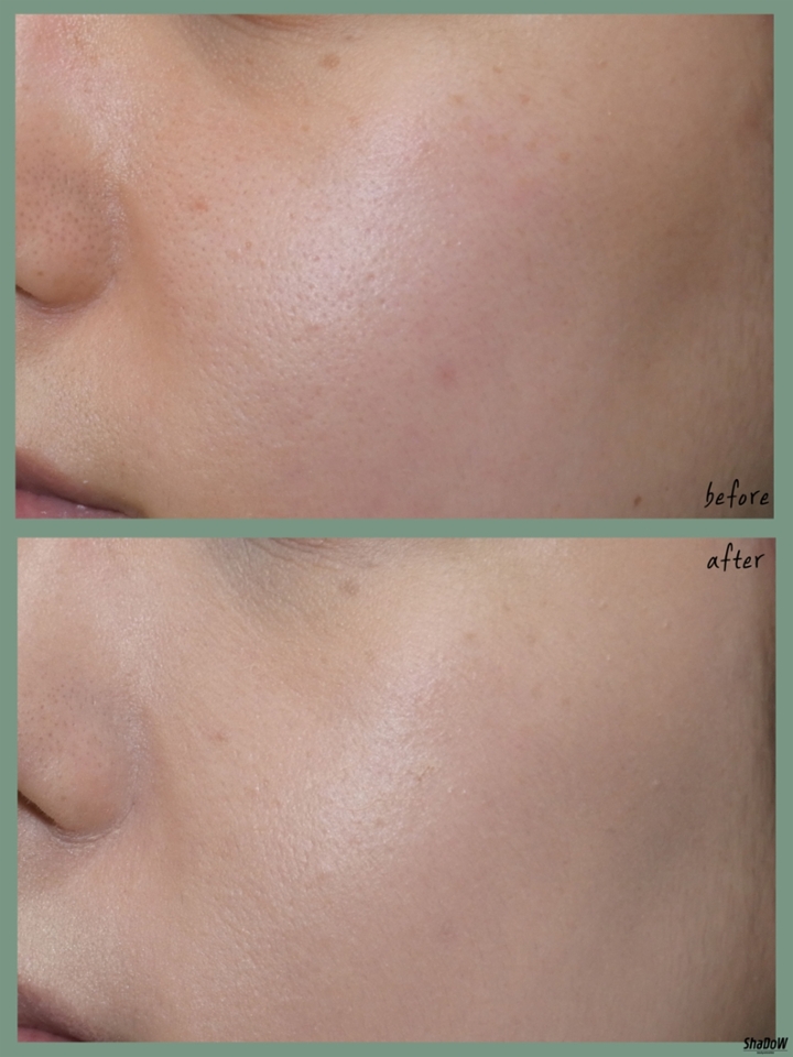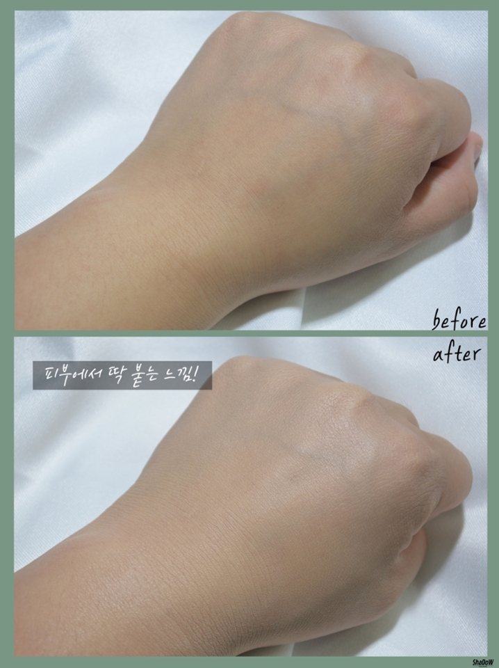 브러쉬를 굴리면서 발랐더니 위에 사진 보다는 좀더 모공을 막아주면서 발리더라구요!