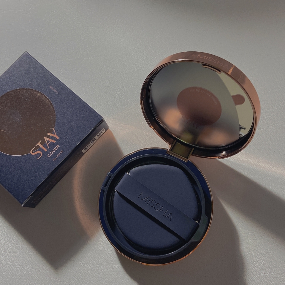 이번 시즌 제가 선택한 베이스는 바로 미샤에서 새로 출시된 스테이 쿠션입니다!