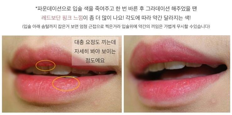 ★★게다가 지속력도 갑... 시간이 좀 지나고 입술에 립스틱이 딱 자리잡으면 물 마셔도 잘 안지워져요. 건조해지고 나서도 물먹은 느낌이 살아있어요!! 착색은 건조함에 비해 제법 있는 편입니다! 보통 착색 많은건 건조한거와 비례하는데 얘는 뭐때문인지 별로 건조한걸 못느끼겠어요. (립밤 바르고 바르면 입술에 제대로 자리를 못잡아서 묻어나와요)