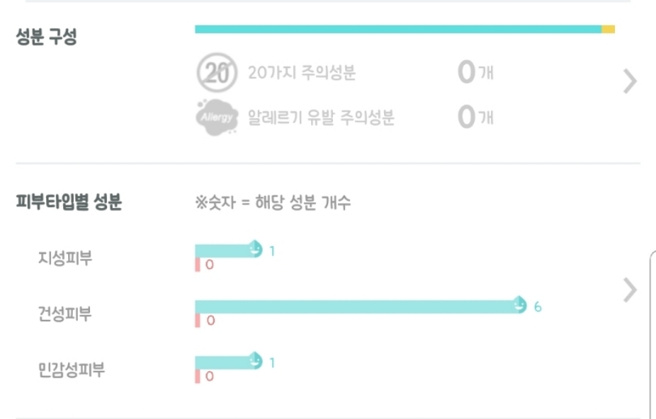 여러분 .. 성분 보세요 ㅠㅠ 20가지 주의성분 & 알레르기 유발성분 모두 하나도 없습니다 .. 😭😭 그리고 피부타입별 성분에도 안 좋은 성분이 하나도 없네요 .. 정말 순한 제품인거 아시겠죠 ..