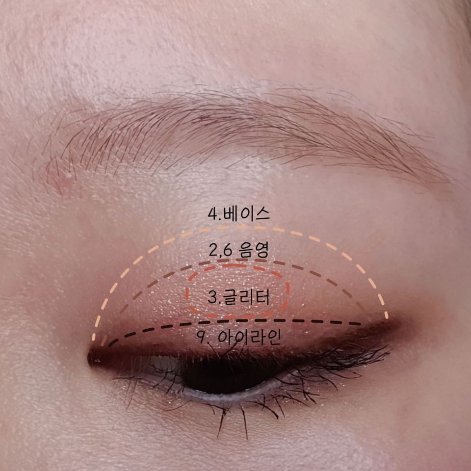 번호순으로 베이스와 음영, 아이라인과 글리터 포인트까지 해주었습니다! 👀