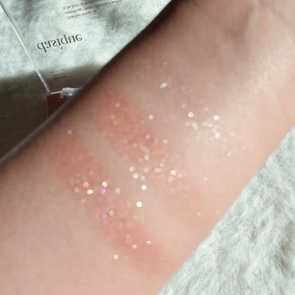 전체적으로 매트 섀도우도 글리터도 손가락으로 발색해도 매우 잘됬어요. 손가락으로 발색하면 뭉쳐서 발색되고 고르지 않게 발리는 경우가 많은데, 데이지크는 입자고 곱고 고르게 발색됩니다. 브러쉬로 발색했을때 컬러감이 더 은은하게 발색되요. 가루날림이 없다는것도 이 팔레트의 장점이에요❤ 글리터의 경우 납작한 브러쉬 또는 손으로 발색해주세요🙂
