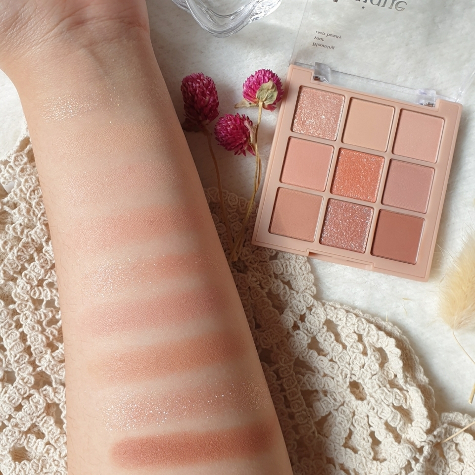 붉은끼가 들어간 컬러도 있지만, 채도가 낮고 붉은끼가 한방울씩 들어간 브라운 컬러들도 있어 활용도가 매우 높아요. 차분한 컬러감이기 때문에 봄웜, 봄라이트톤도 충분히 잘어울릴 것 같아요. 전체적으로 색에 힘을 주지 않는 메이크업에 딱이에요. 하지만 데이지크 팔레트는 글리터가 장난 아니기때문에 데일리 스러우면서 포인트는 확실하게 줄 수 있습니다.