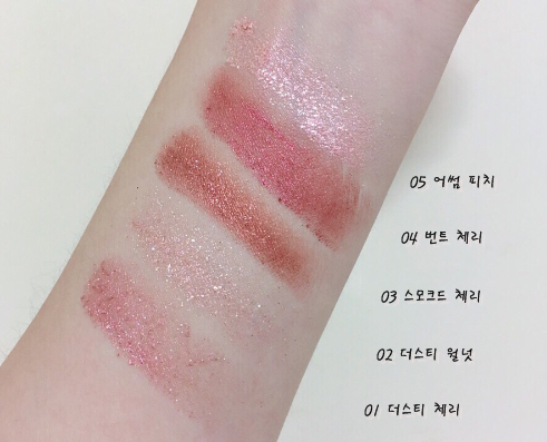 작년 연말 시즌에 출시됐던 제품이니 만큼 굉장히 화려한 펄감을 자랑하는 섀도들이고, 총 5가지