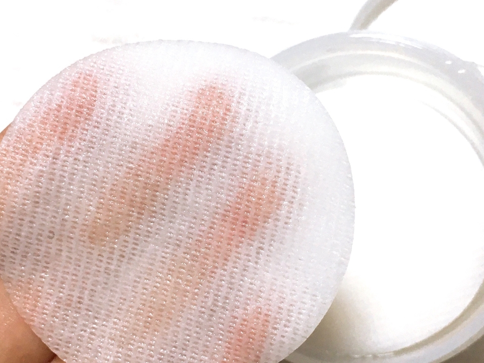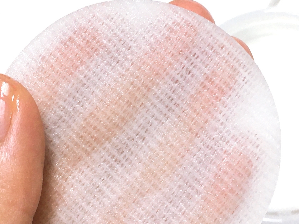 가볍게 손등을 닦아내 보았는데요! 일단 수분감이 꽤 엿보이는 패드였어요