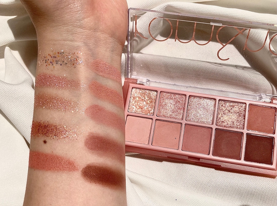 손목발색을 했을때 역시 롬앤 섀도우답게 입자가 고와서 정말 부드럽게 발리면서 밀착이 잘 됬고 가루날림은 좀 있지만 발색 또한 꽤 잘 되는 편이였어요.