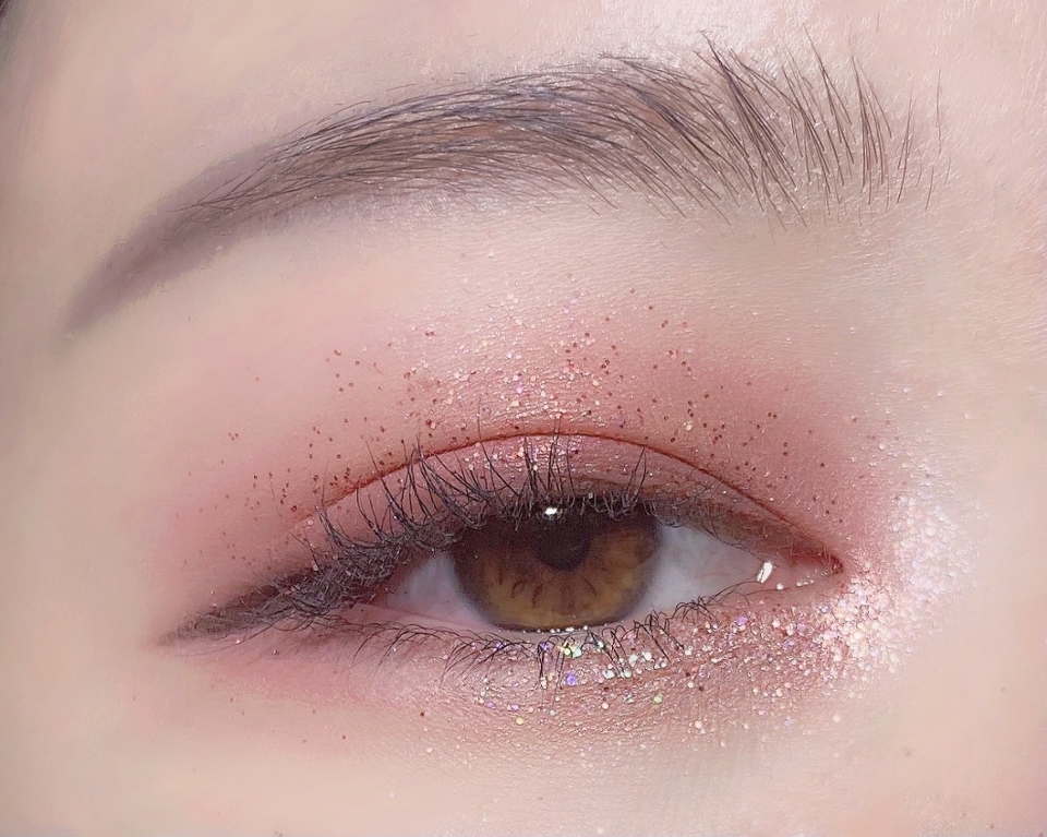 이 섀도우 팔레트는 4종류의 글리터와 6컬러의 무펄섀도우로 구성되어 있는데요, 글리터의 입자, 크기, 종류가 하나하나 다 달라서 이 팔레트 하나만 가지고 다녀도 여러 스타일의 아이메이크업을 할 수 있다는 장점이 있었어요!