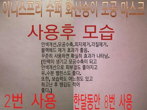 *한달동안 일주일에 2번씩 꾸준히 쓴 뒤 쓰는 평가임 알려드립니다. 쓰는 동안 이 제품을 쓰면서 아무런 문제는 없었음을 알려드립니다. 또한, 효과는 천천히 나타나므로 꾸준히 쓰셔야 합니다.
