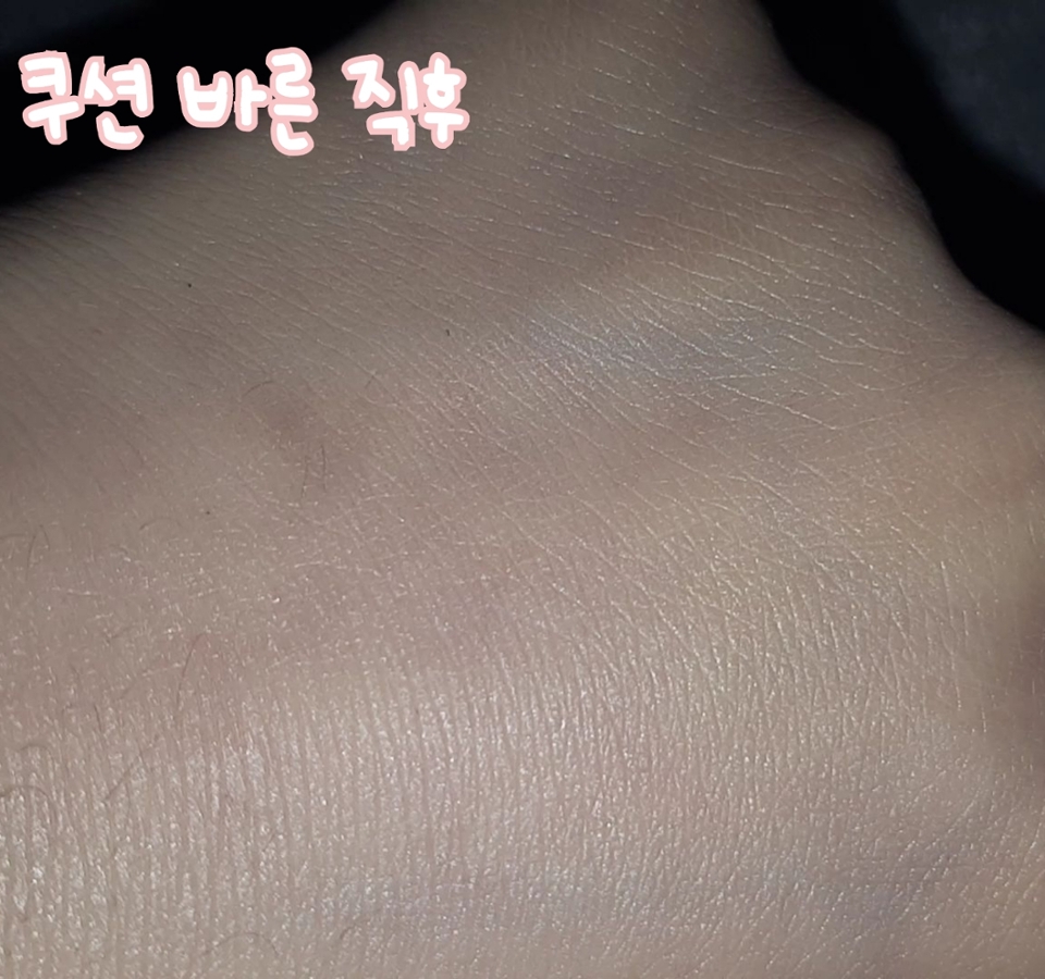 쿠션 바른 직후 가까이 찍은 사진입니다.