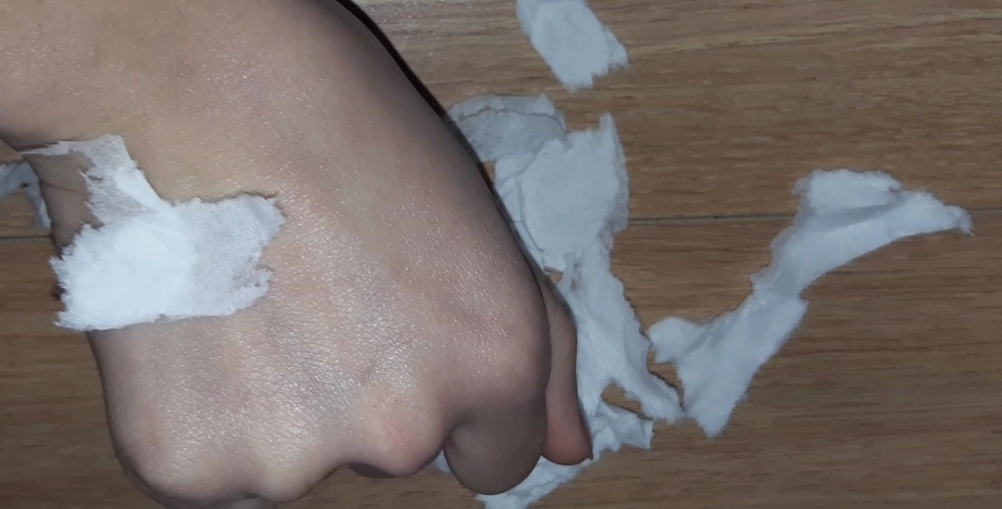 그래서 간단하게 휴지쪼가리(?)를 사용하여 끈적임 테스트를 해봤어요.