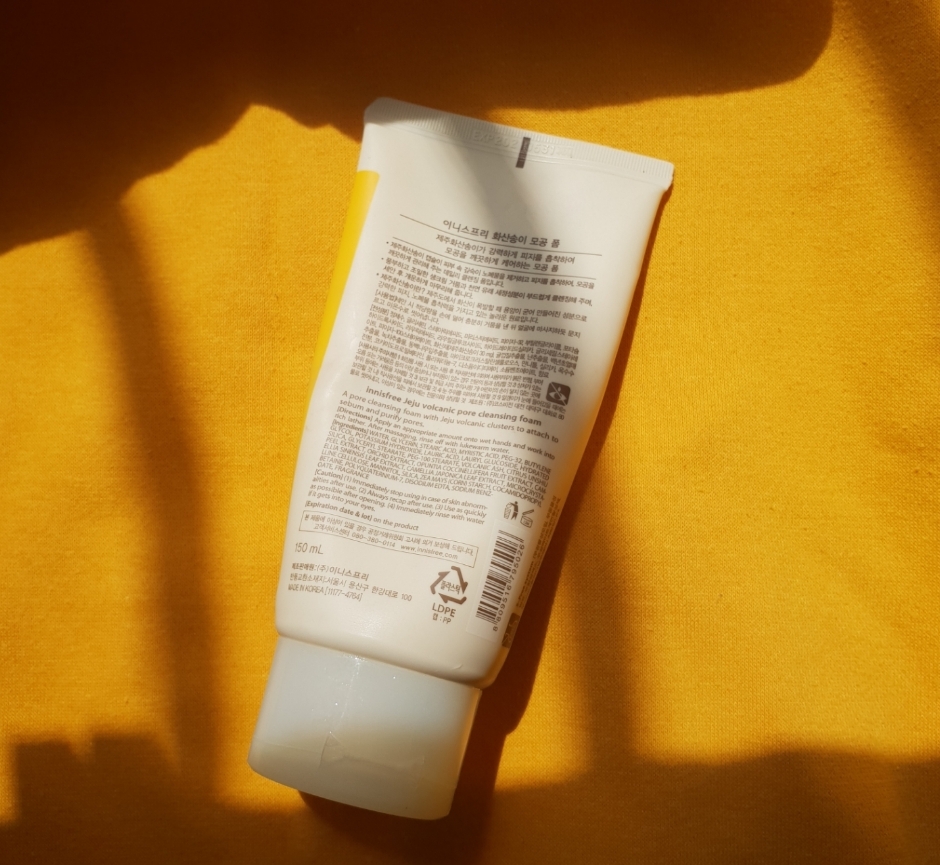 이 제품입니다 !! 일단 이런식으로 뭔가 이니스프리 답게 생긴 제품이에요 (?) ㅎㅎ 제주 화산송이도 그려져 있네요 !! 이렇게 사이즈는 되게 커요 !! 150ml라고 했으니까 제 손 크기랑 같았어요 !! ( 17 ~ 18cm ) 여행용으로 들고 다니기엔 살짝 불편할 수도 있을 것 같아요 ㅠㅠ 그리고 이렇게 튜브형 타입 제품입니다 ❤ 저는 사실 단지형 타입보단 튜브형 타입을 선호하는 편이에요 !! 앗 근데 클렌징폼에 단지형 타입이 있을까요 ..? ㅋㅋㅋ