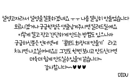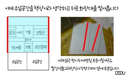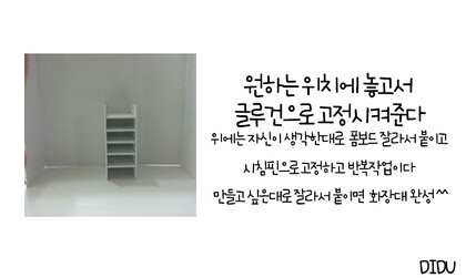 화장대만들기 1에서 이어져요 첫번째꺼 먼저보고 오셔야 이해가 가실꺼에요! 설명잘못했지만 그래도 잘봐주세요 ㅠㅠ 공유하고자 이렇게 준비해왔습니다 궁금하신점은 댓글남겨주세요 감사합니다♥