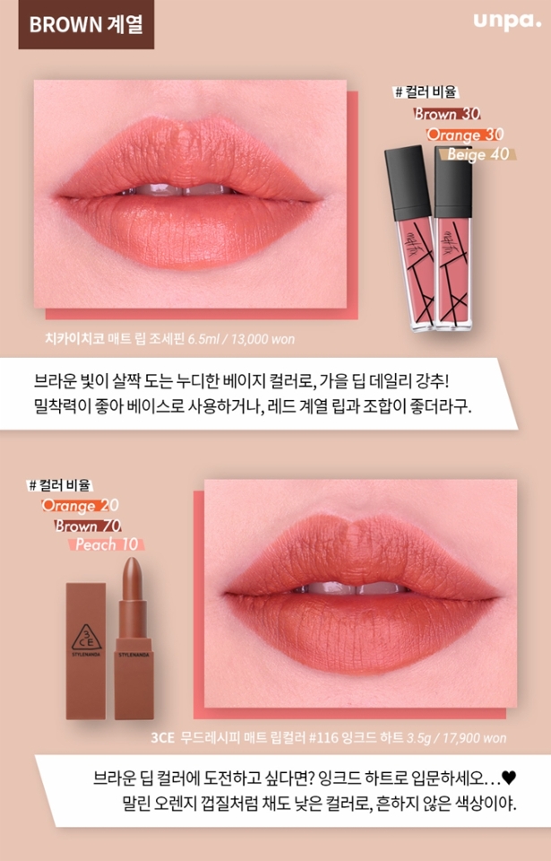갈웜 에디터가 추천하는 가을 립 16종 발색