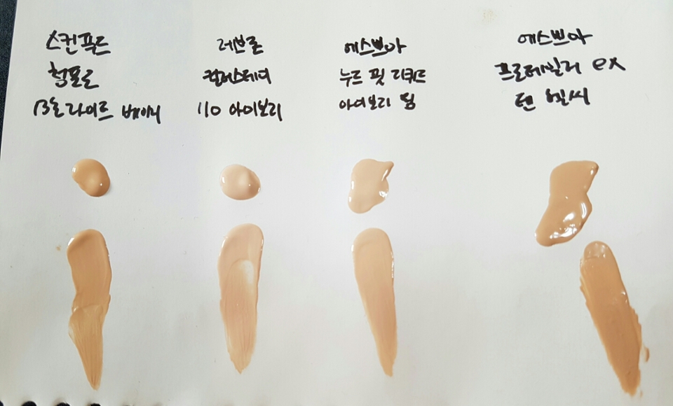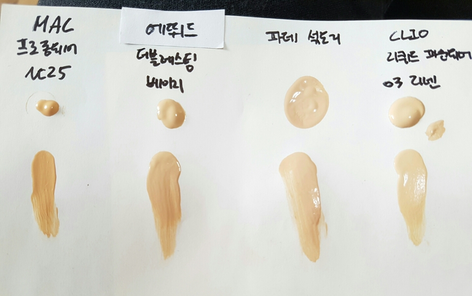 기본적으로 전부 다 밀착력이 좋았습니다. 레브론도 나쁘진 않았지만 피부가 엄청 안좋은 날에는 좀 뜨는 감이 있었어요.
