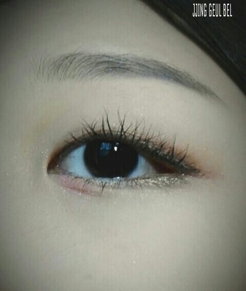 붓펜라이너로 아이라인을 그리고, 그 윗부분과 언더삼각존을 브라운 펄스틱섀도우로 채워주어서 라인을 자연스럽게 만들어 주었습니다!