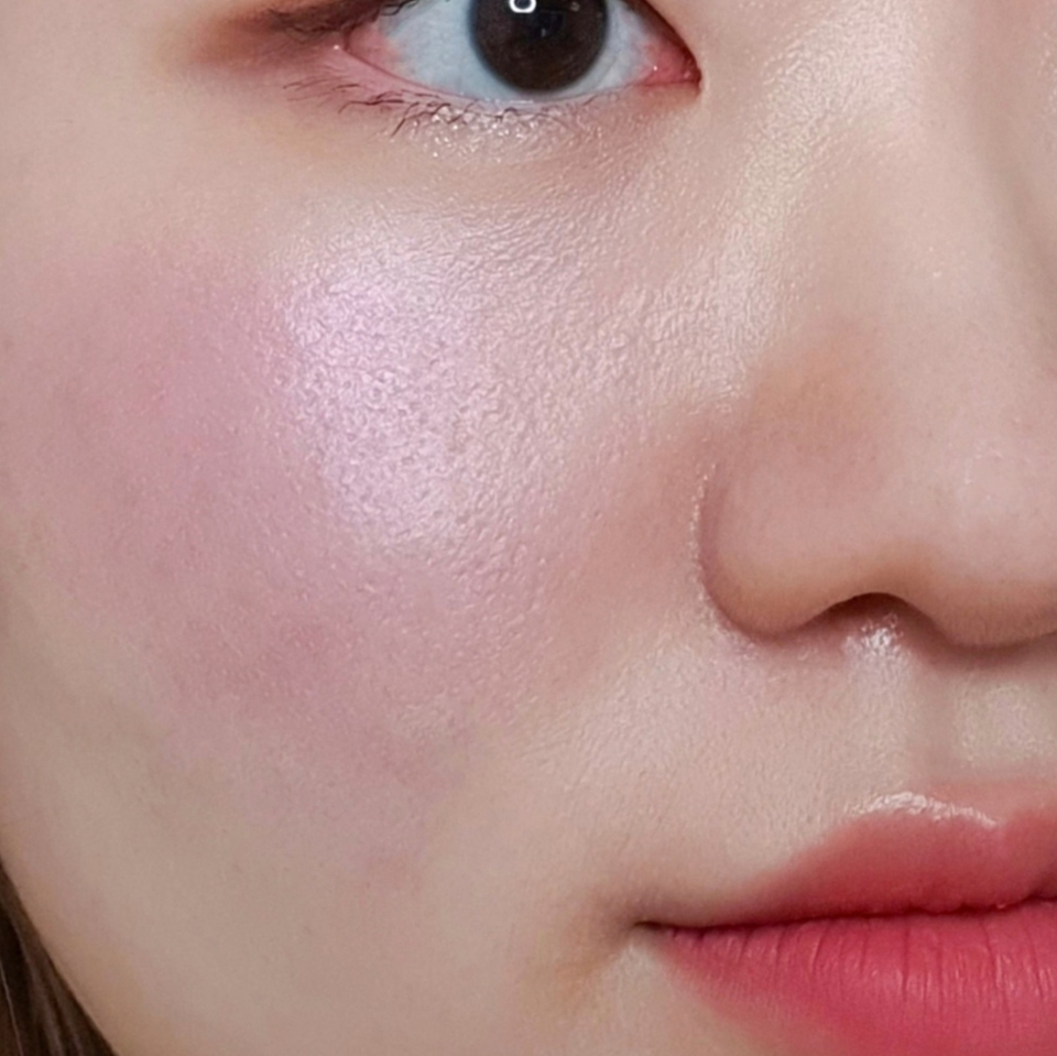 딸기우유+약간의 플럼빛이 섞여 화사한 컬러의 블러셔를 하이라이터 해주듯 앞볼과 광대에 발라 생기를 더해줍니다.