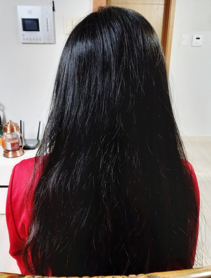머리가 긴 편이라 뒷머리는 도움을 받았어요